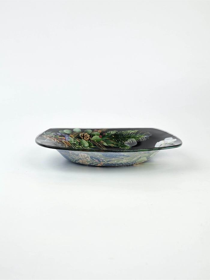 Стеклянная глубокая тарелка размером 20 ⨯ 20 см — идеальный выбор для новогоднего стола.