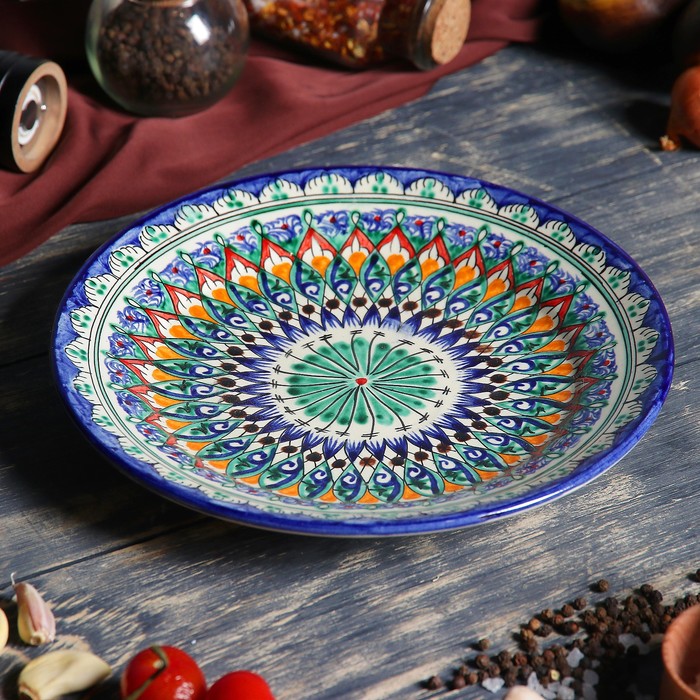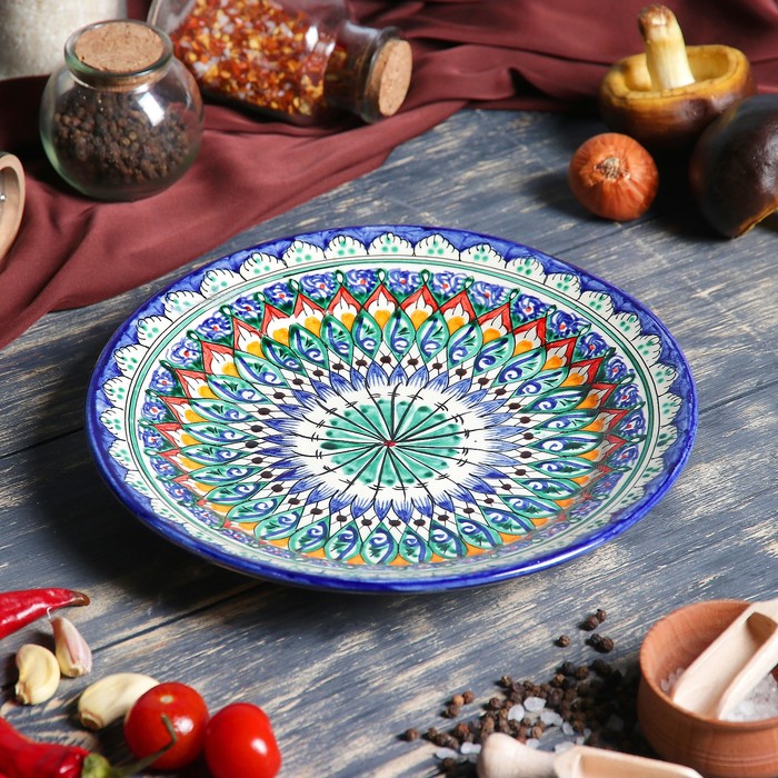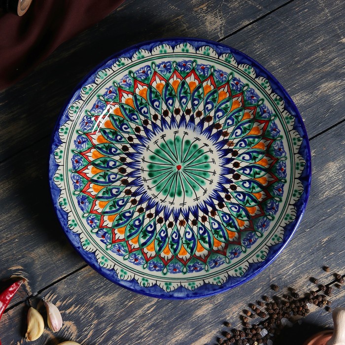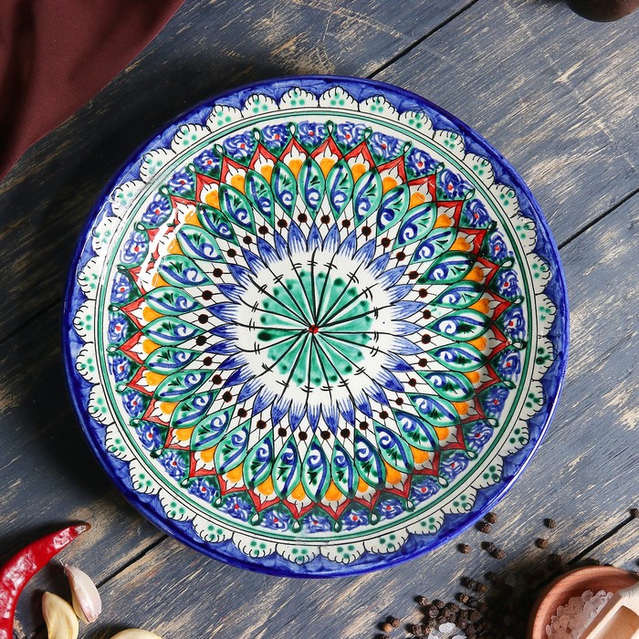 Эта круглая керамическая тарелка отлично сочетается с другими предметами сервировки в традиционном или современном стиле. Ее универсальный дизайн позволяет создавать гармоничные композиции, подчеркивающие национальный колорит. Ручная работа и натуральные материалы обеспечивают долговечность и уникальность каждой единицы, делая ее надежным выбором для ежедневного использования и особых случаев.