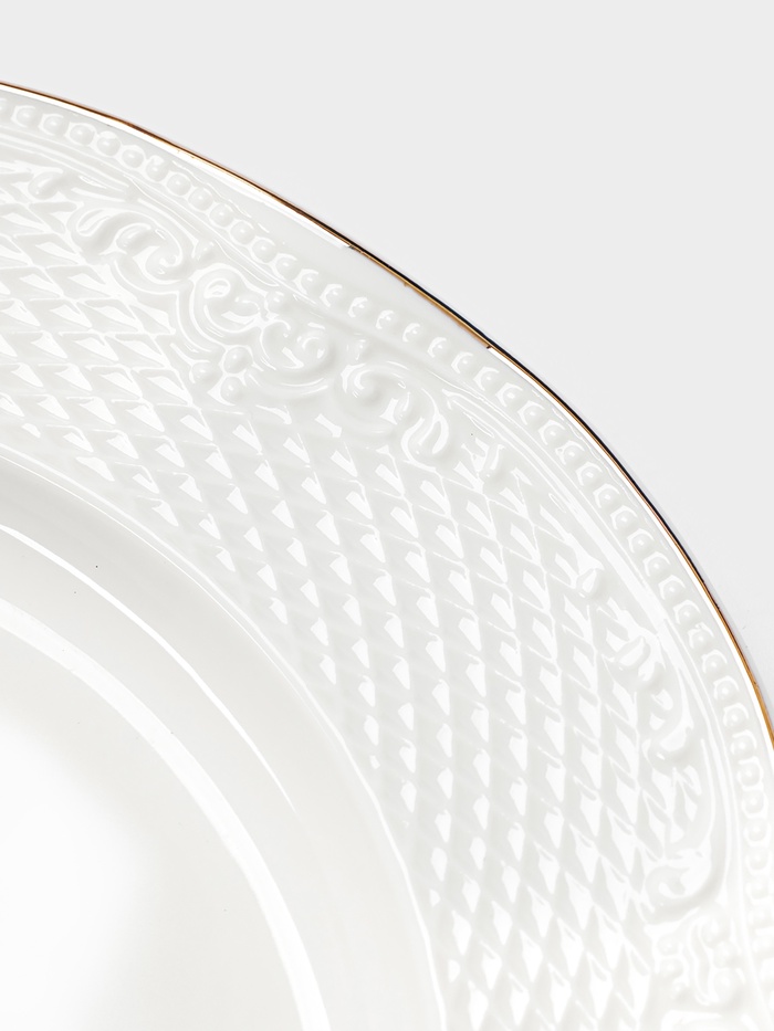 Тарелка "Empire" – прекрасный выбор для создания неповторимой атмосферы за вашим столом. Фарфор обеспечивает элегантность и гигиеничность. Подходит для подачи горячих блюд. Не рекомендуется использование в микроволновой печи и посудомоечной машине.