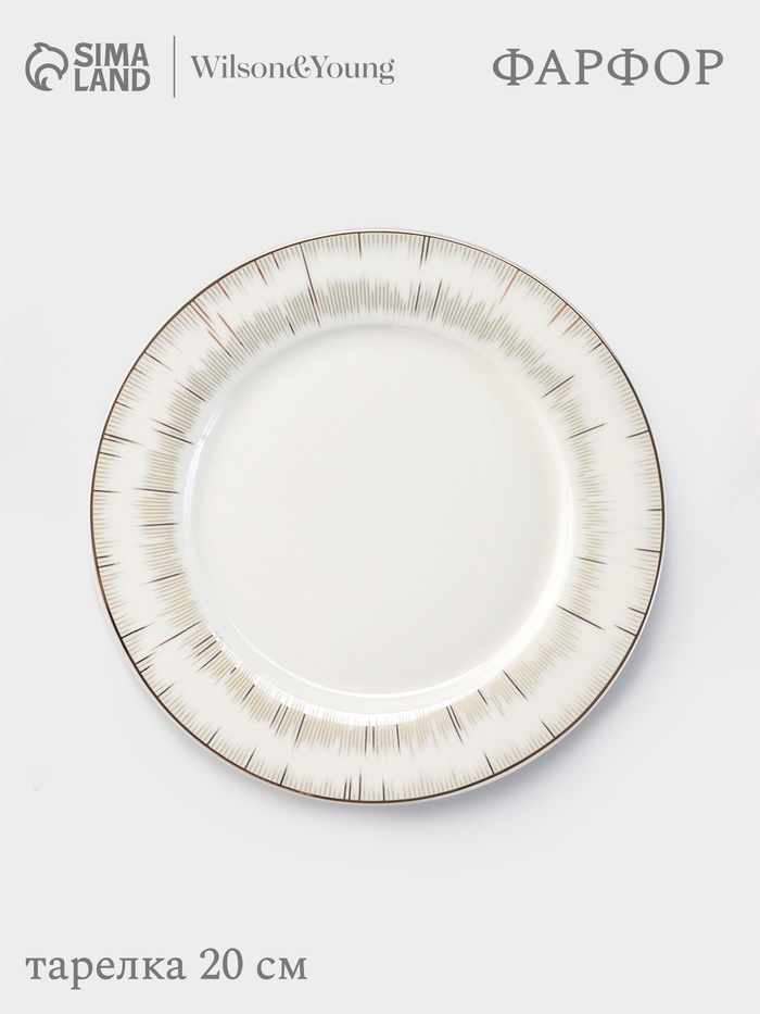 Представьте: белое полотно чистого фарфора, расчерченное тонкими золотыми линиями, словно взлетающие к солнцу лучи. Эта тарелка – воплощение элегантной простоты. Диаметр 20 см делает её идеальной для подачи десертов, закусок или небольших порций салатов, добавляя нотку роскоши в каждое блюдо.