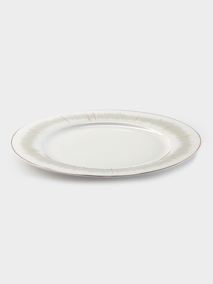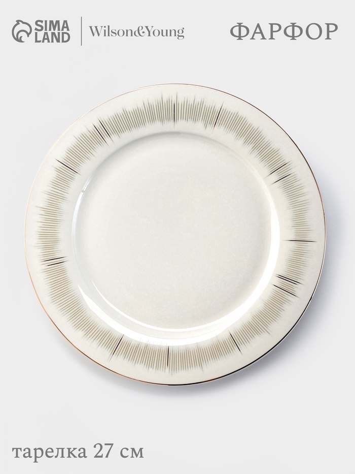 Представьте: белая гладь, расчерченная тонкими золотыми линиями, словно солнечные лучи на рассвете. Эта тарелка – воплощение элегантности и утонченности. Большой диаметр (27 см) идеально подходит для подачи основных блюд, создавая атмосферу праздника и роскоши.