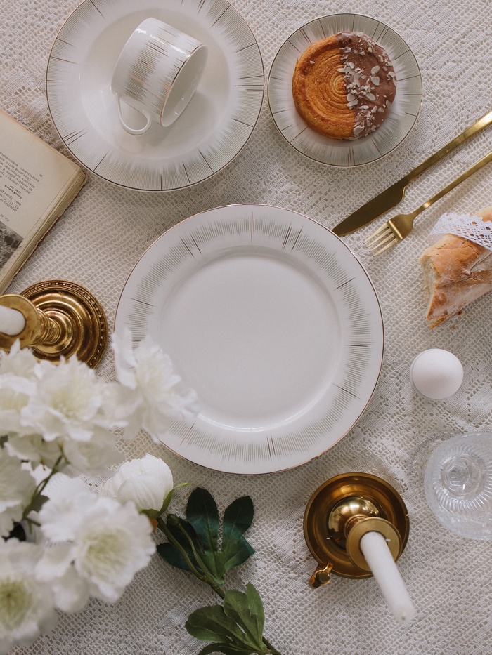 - Утонченный дизайн: Белый фарфор и золотые линии создают атмосферу элегантности и роскоши.