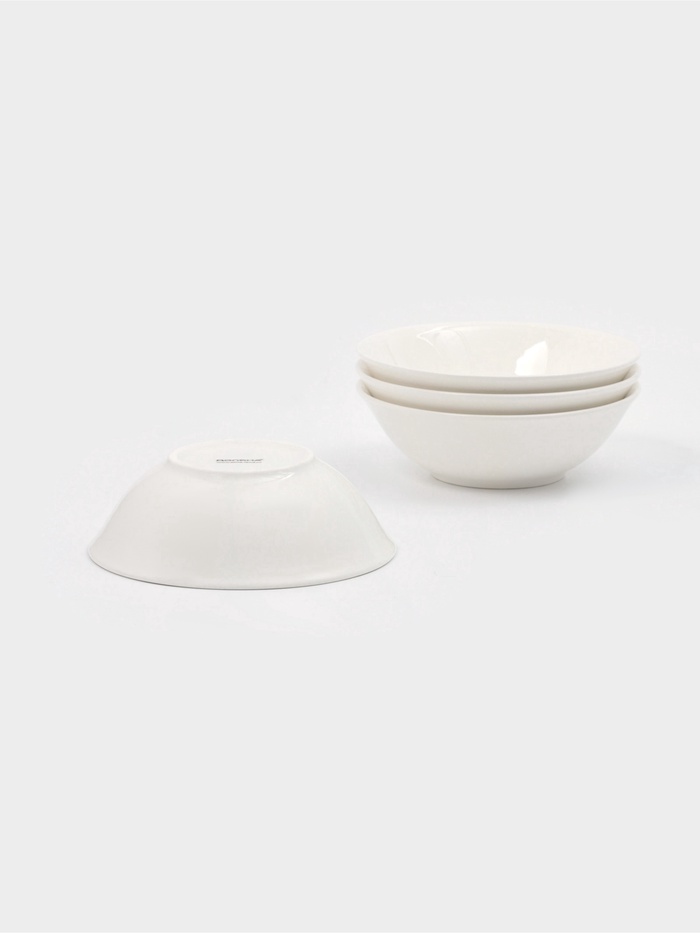 Глубокие тарелки «White Label» — фарфоровый минимум для максимального удобства. Набор из четырёх белых тарелок диаметром 15 см и объёмом 350 мл идеально подходит для супов, бульонов, круп, пасты и даже десертов. Компактный размер не занимает много места на столе, но при этом сохраняет всё необходимое: прочность фарфора, устойчивость к нагреву и простоту в уходе.