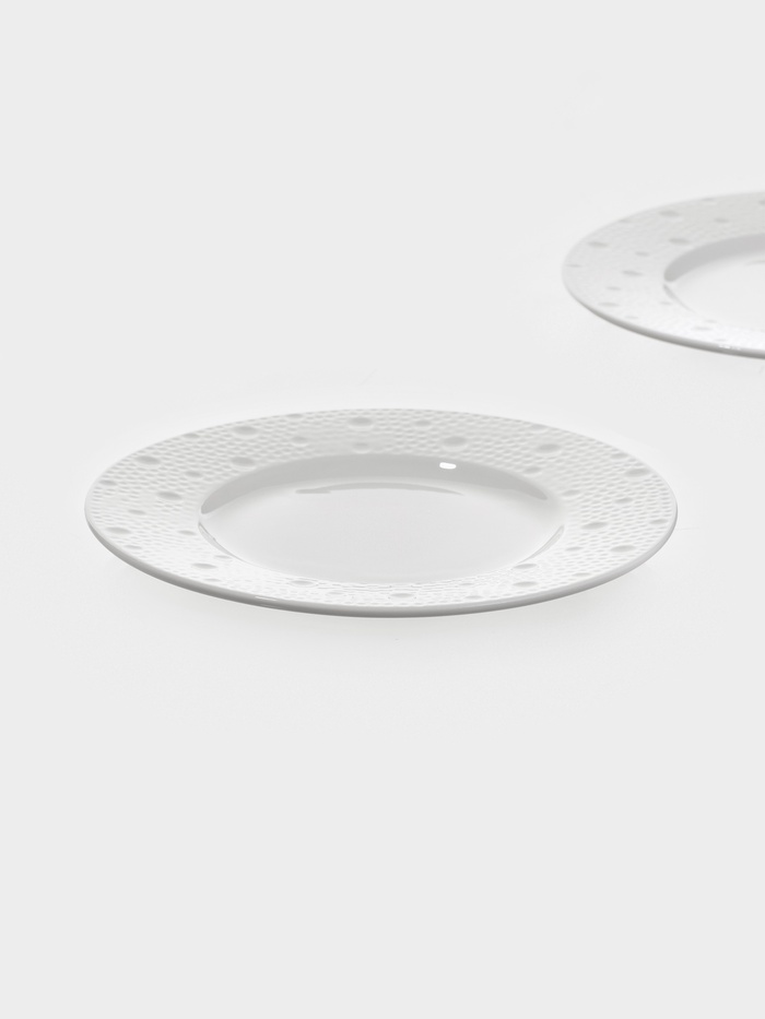 Тарелки "Fray"идеально подходят для подачи закусок, десертов, небольших порций салатов или в качестве подстановочных тарелок. Рельефный барельеф придает им особый шарм и делает их центром внимания на столе. Фарфор высокого качества обеспечивает долговечность и удобство в использовании: тарелки можно использовать в микроволновой печи и мыть в посудомоечной машине.