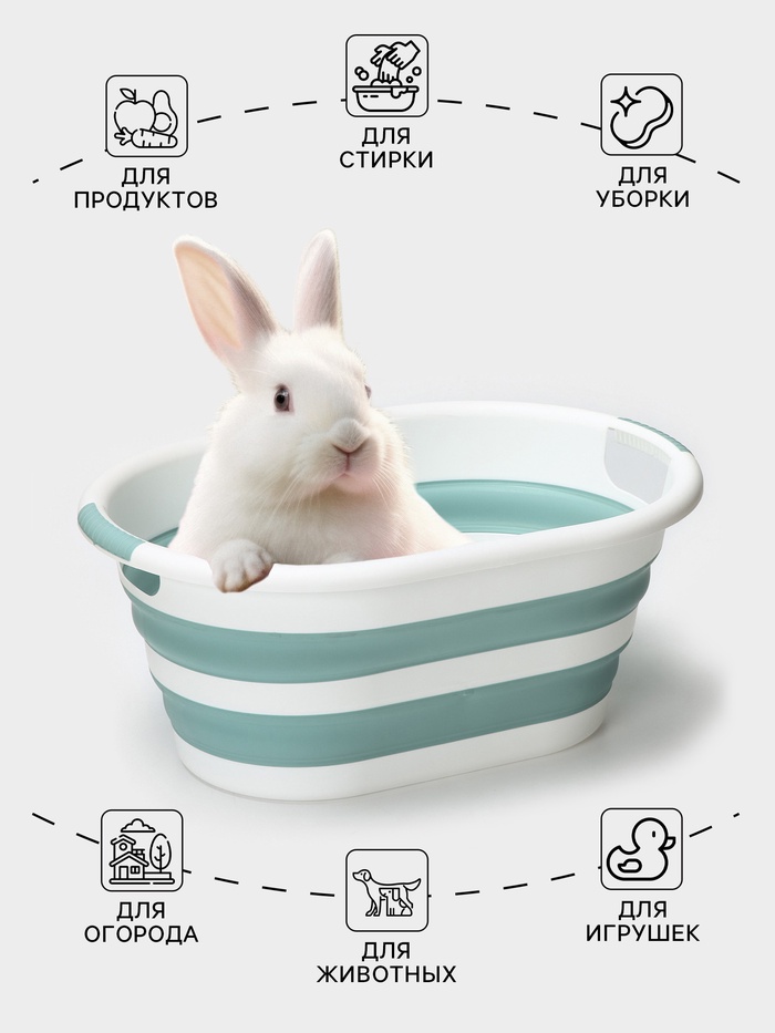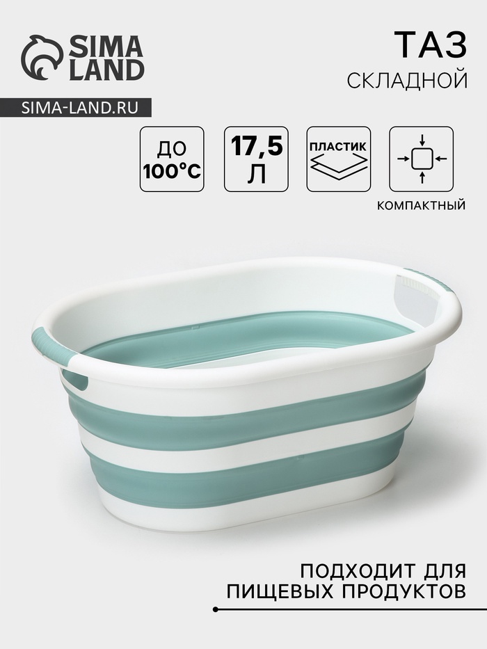 Таз складной «Флекс», 17.5 л, 33.5×49×6.5 см, цвет морская волна