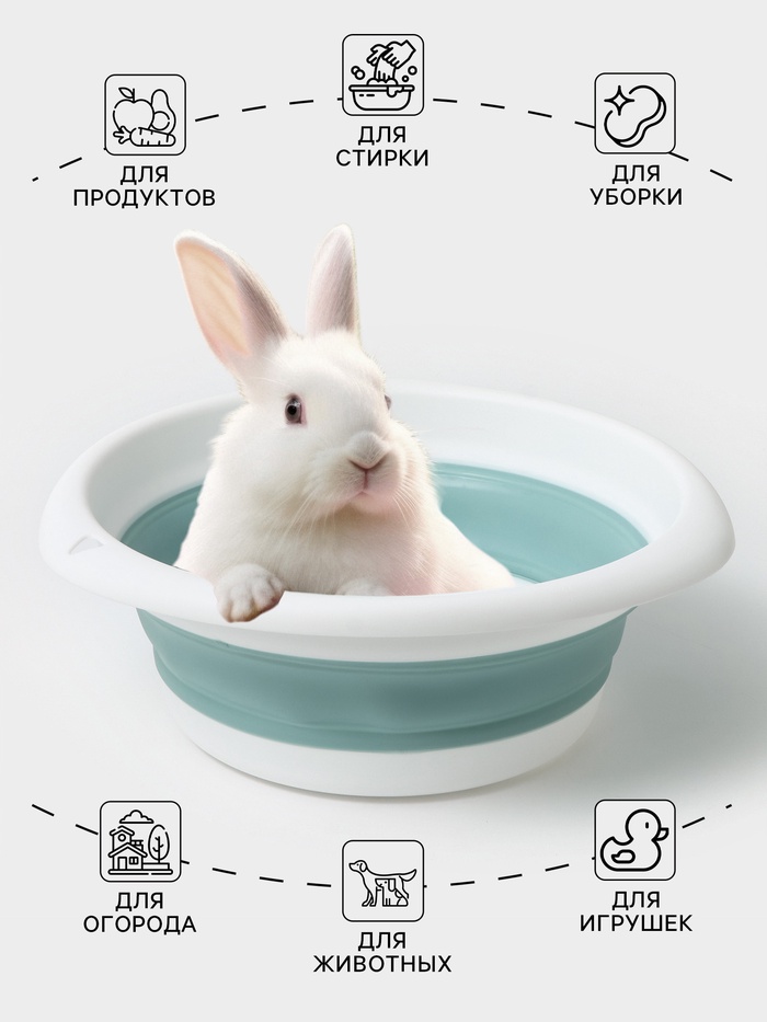 Таз складной «Флекс», 5.5 л, 32.5×33×4.5 см, морская волна