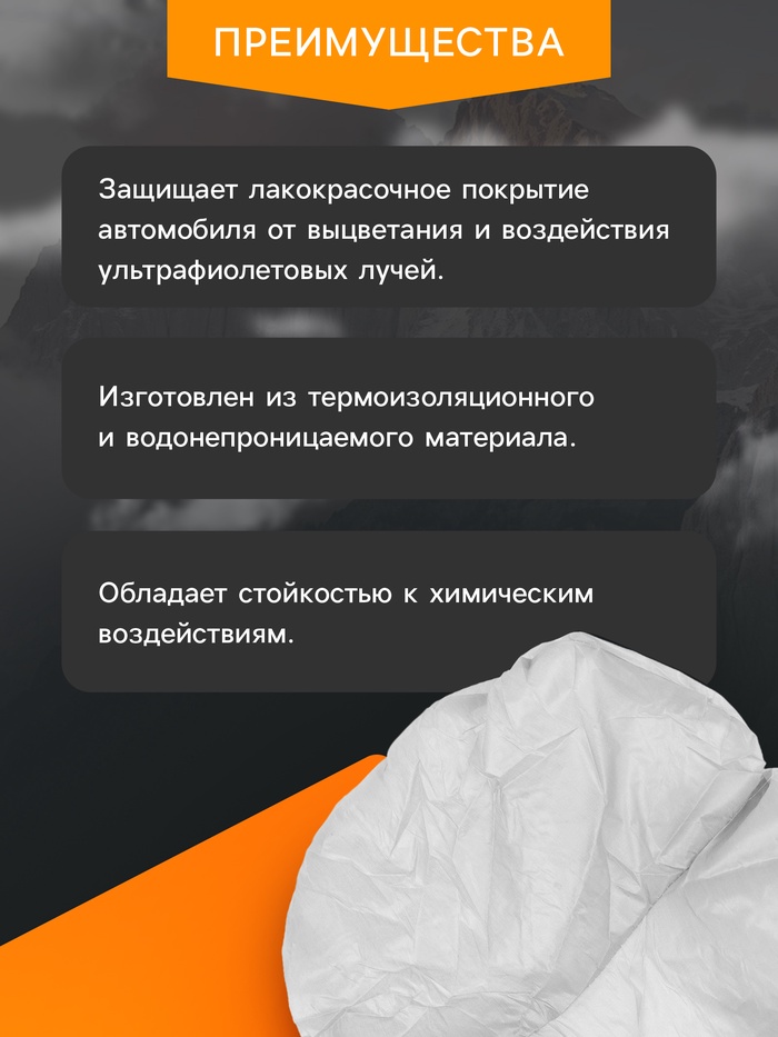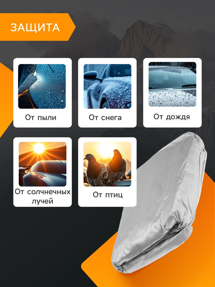 Резинка, расположенная по нижнему краю тента, обеспечивает плотное прилегание и защиту от пыли и грязи. Тент легко устанавливается и снимается, а также имеет стильный дизайн, который прекрасно сочетается с любым автомобилем. CARTAGE Standard обеспечивает надежную защиту от солнца, ветра, дождя и снега. Он также поможет сохранить лакокрасочное покрытие автомобиля в хорошем состоянии и предотвратить его повреждение от ультрафиолетовых лучей и других атмосферных воздействий.