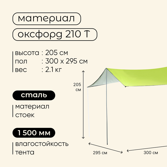 Тент защитит от солнечных лучей и дождя. Компактное изделие удобно хранить. В комплект входит сумка-чехол.