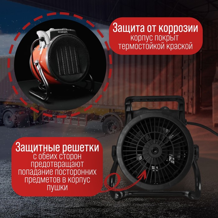 Тепловая пушка ЛОМ позволяет обогревать помещения площадью до 60 м²: гаражи, мастерские, складские помещения или небольшие коммерческие зоны.