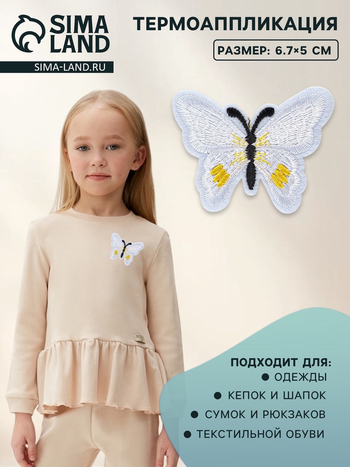 Термоаппликация «Бабочка», 6,7 × 5 см, цвет белый