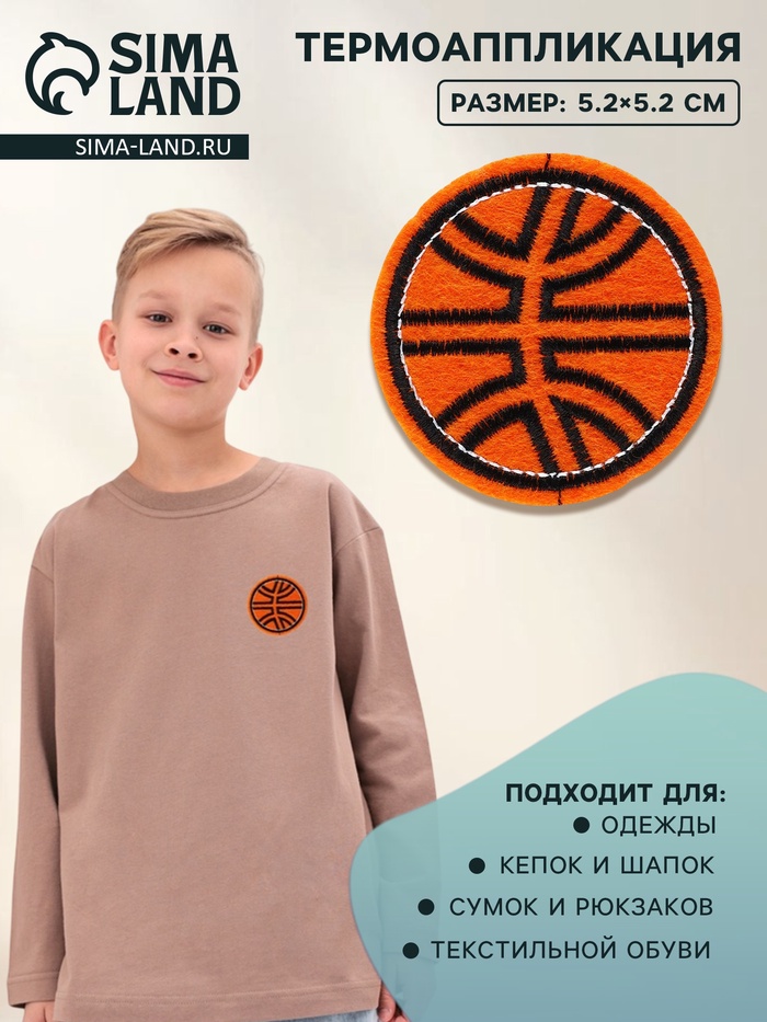 Термоаппликация «Баскетбольный мяч», d = 5,2 см, цвет оранжевый