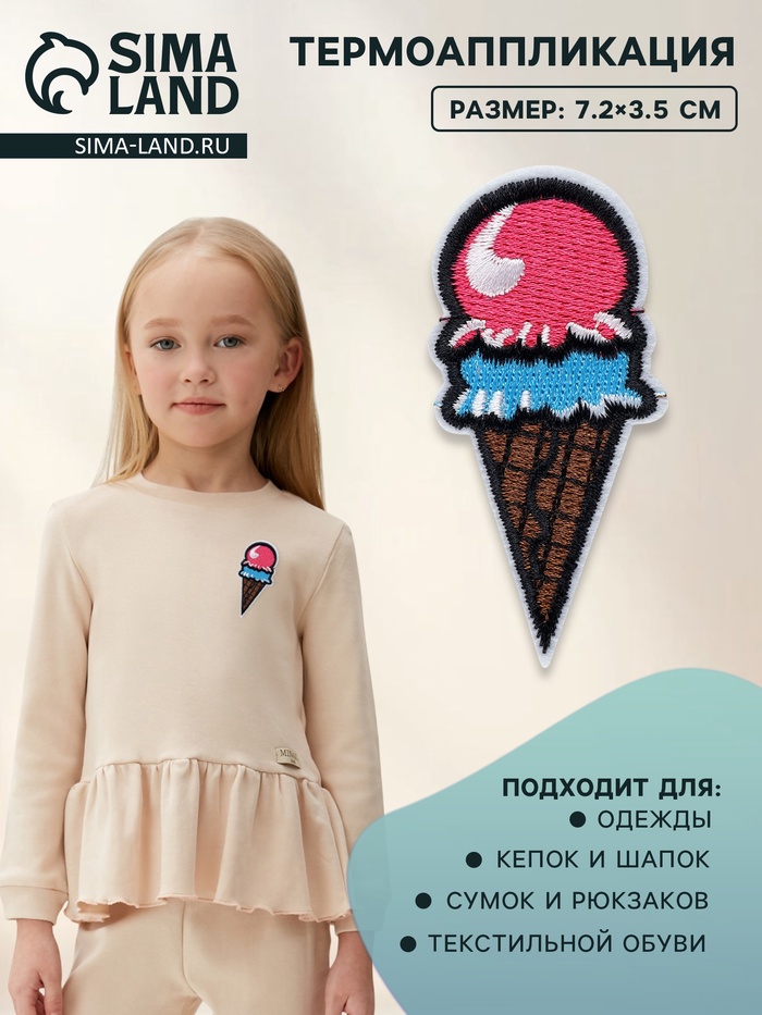 Термоаппликация «Мороженое», 7,2 × 3,5 см, цвет разноцветный