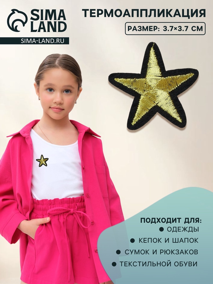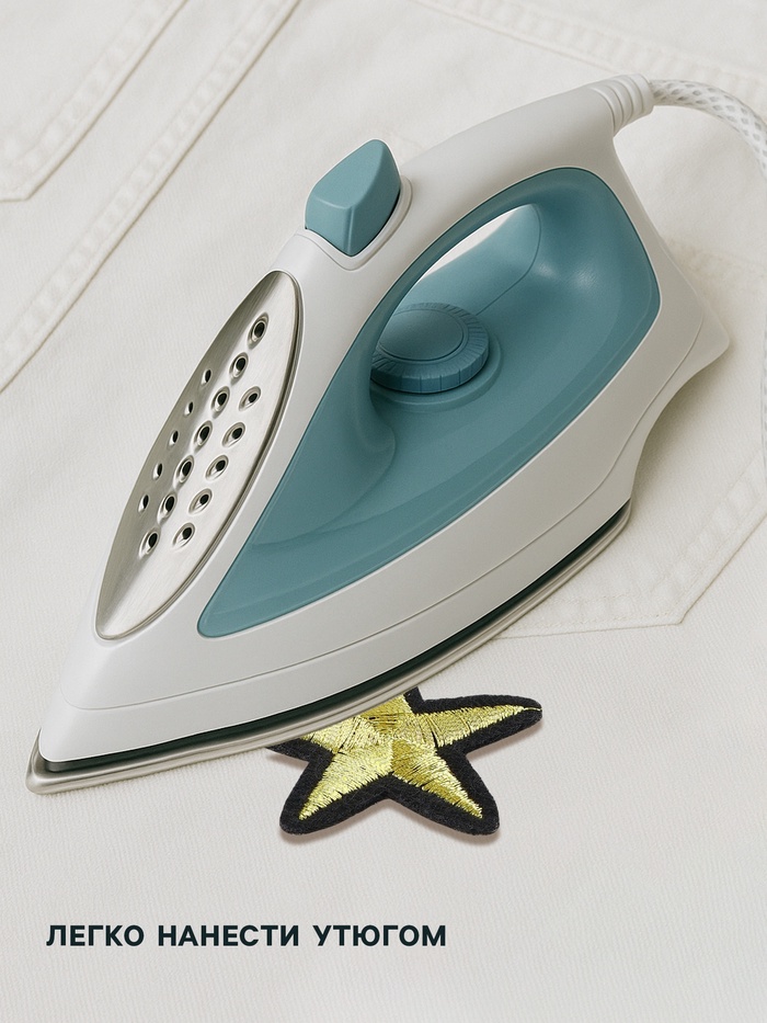 Термоаппликации «Звёздочка» — это компактные и стильные декоративные элементы для текстиля с праздничной тематикой. Аппликации выполнены в виде золотых звёздочек, что делает их идеальными для создания военной или торжественной символики.