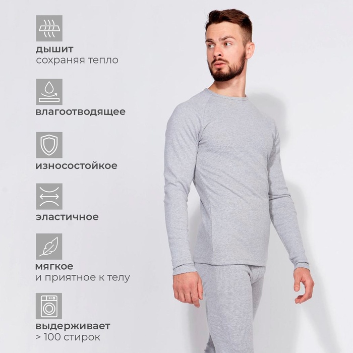 Термобельё мужское (джемпер, брюки) MINAKU, цвет светло-серый меланж, размер 56