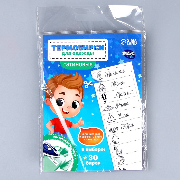 Термобирки для одежды. Набор именных термонаклеек для маркировки детских вещей «Озорной мальчик», 30 шт.