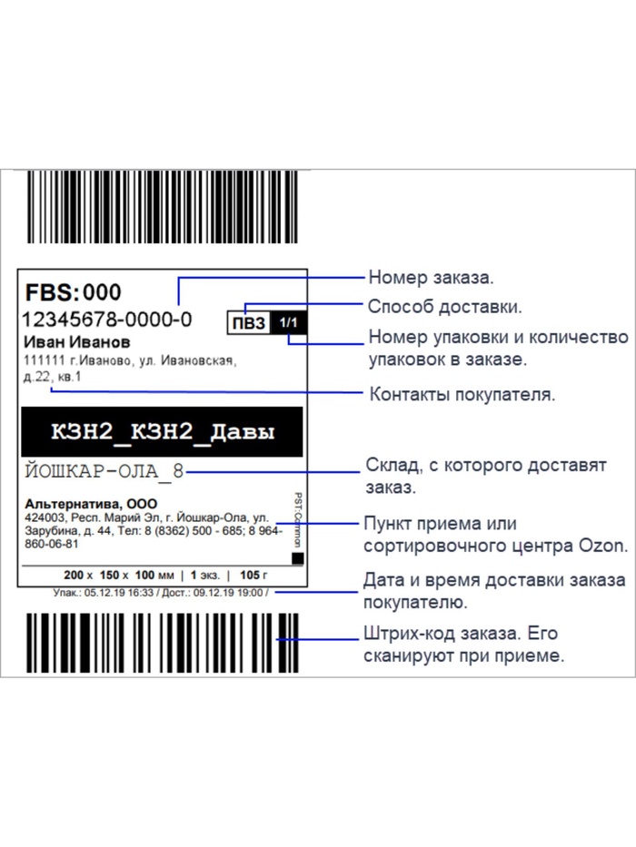- Размер маркировки — 12 × 7,5 см, распечатана на термопринтере или на термотрансферном принтере.
