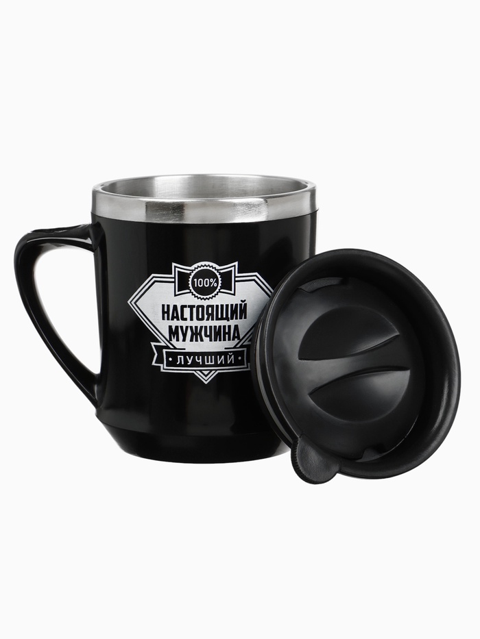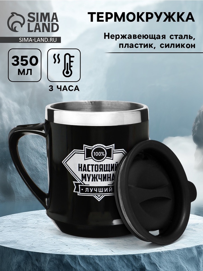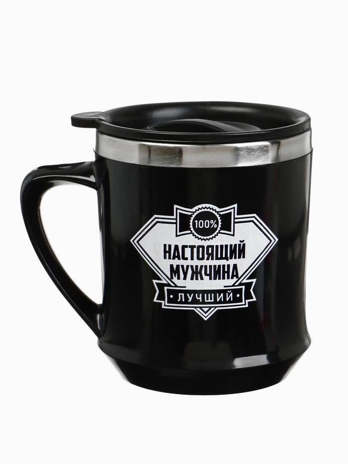 Термокружка, 350 мл, «Настоящий мужчина», сохраняет тепло 3 ч, чёрная