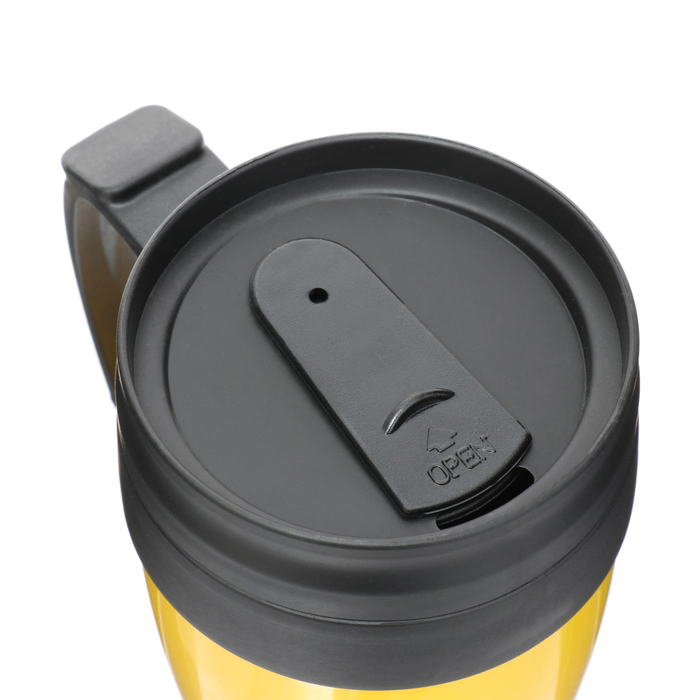 - Термокружка выполнена из пластика и силикона, поэтому устойчива к механическим повреждениям.