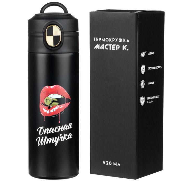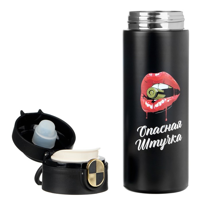 Термокружка для кофе и чая "Опасная штучка" идеальна для офиса, автомобиля, длительных прогулок и детям в школу. Благодаря специальному покрытию надежно лежит в руке.