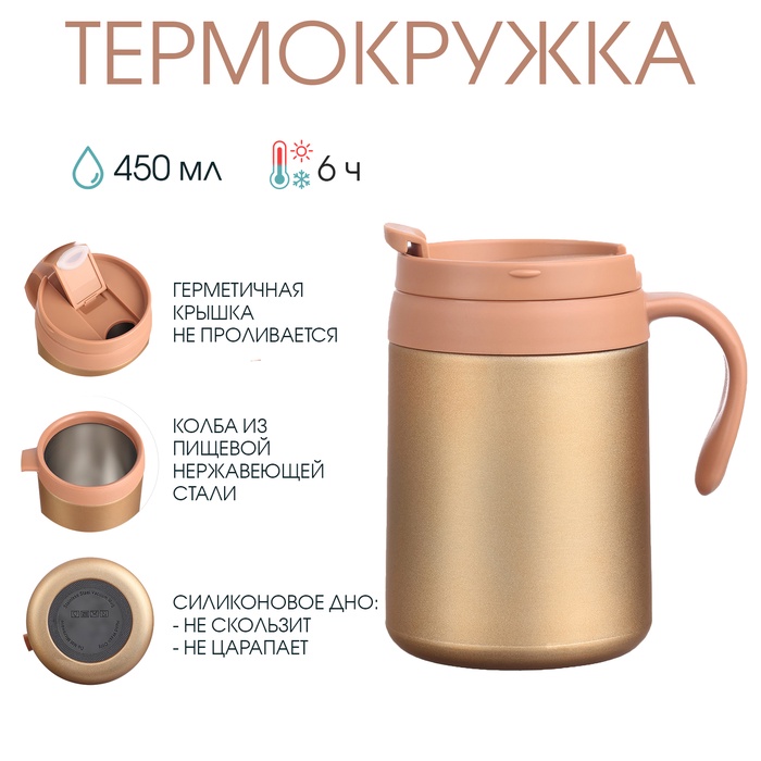 - Термокружка выполнена из нержавеющей стали, поэтому устойчива к механическим повреждениям.