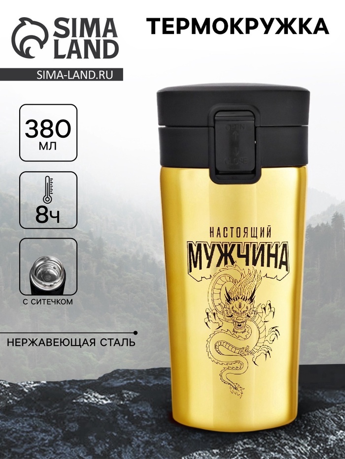 Термокружка для кофе и чая "Мастер К" идеальна для офиса, автомобиля, длительных прогулок и детям в школу. Благодаря специальному покрытию надежно лежит в руке.