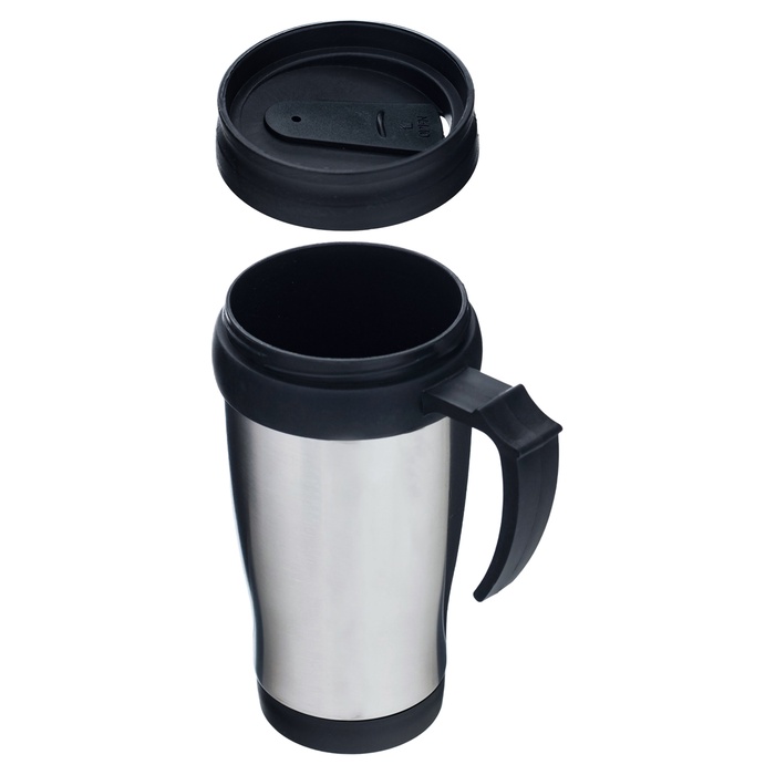 - Термокружка выполнена из высококачественной нержавеющей стали, пластика и силикона, поэтому устойчива к механическим повреждениям.