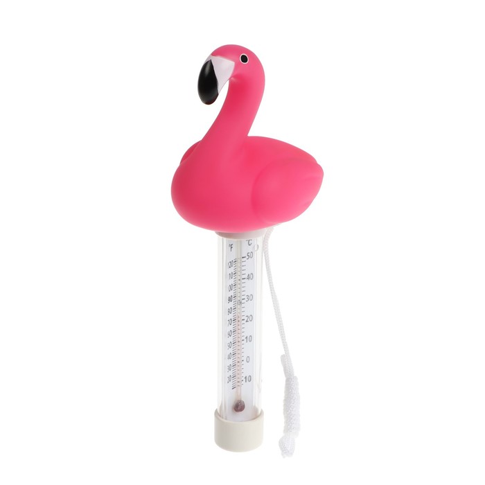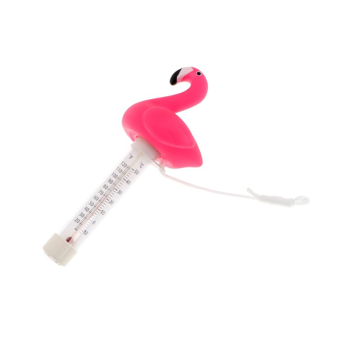 Термометр поможет измерить температуры воды в бассейне или в ванной. Для удобства устройство измеряет температуру в градусах Цельсия (°C) и Фаренгейта (°F). Диапазон температур от 0 до 50°С (от 30 до 120°F). Термометр в виде поплавка не будет мешать во время купания. Сверху прикреплен резиновый фламинго, - яркий компаньон для ребенка во время купания.