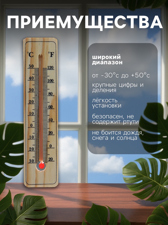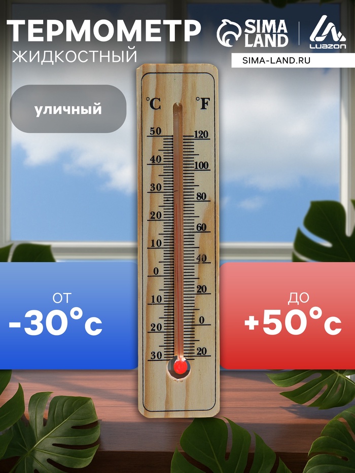 Уличный термометр предназначен для определения температуры воздуха снаружи помещения. Жидкость в столбике представляет собой подкрашенный спирт, что делает изделие безопасным в быту. Такой прибор может быть полезен дома, на работе, а также в учебных, медицинских и других учреждениях.