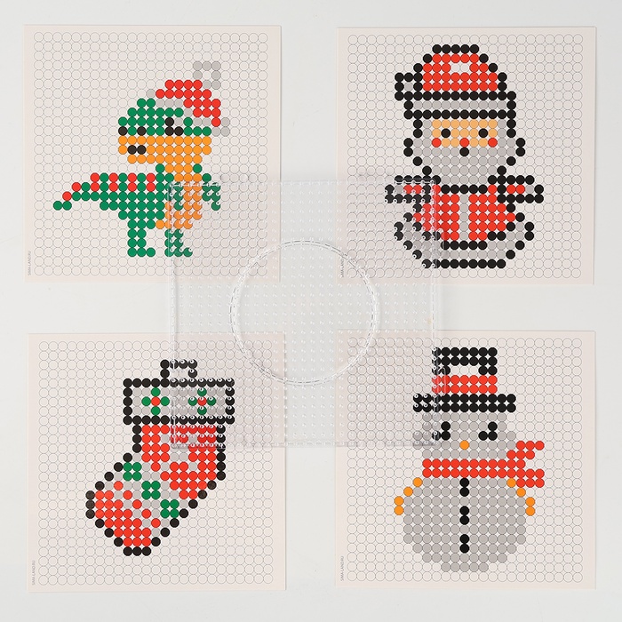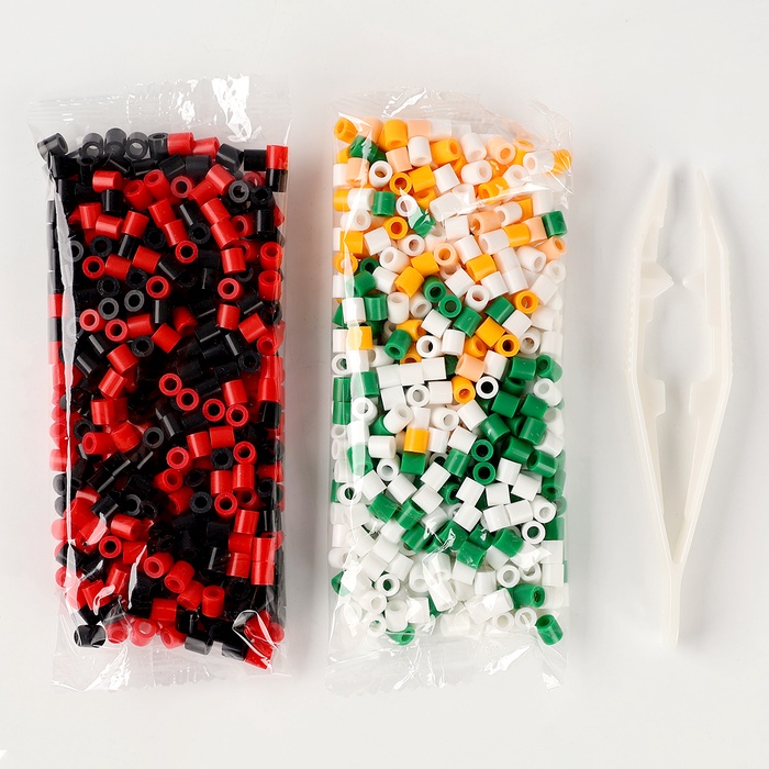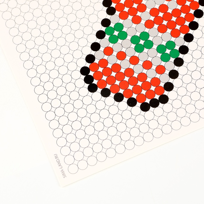 - Разместите схему под прозрачной основой. С помощью пинцета выложите на основе детали соответствующих цветов.