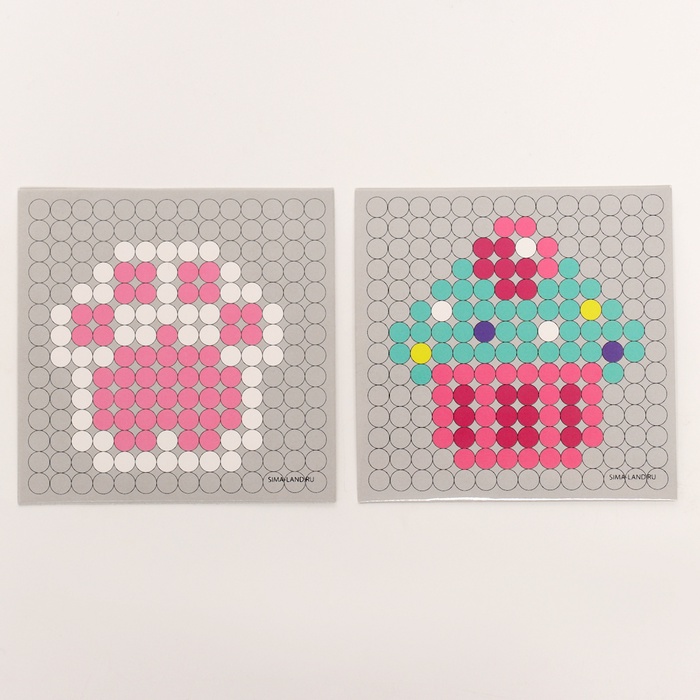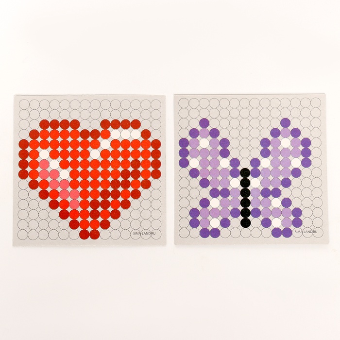 - Разместите схему под прозрачной основой. С помощью пинцета выложите на основе детали соответствующих цветов.