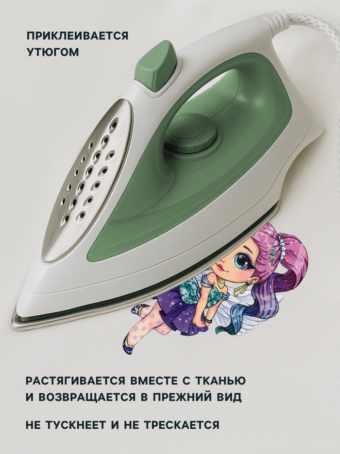 - Лёгкое нанесение: Прочно крепится за 30 секунд — просто приложите и прогладьте утюгом