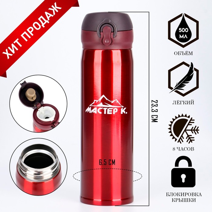Термос "Мастер К" - это стильный аксессуар и отличный подарок на новый год, другу, подруге, брату, сестре, девушке, папе, маме, мужу, жене, бабушке и дедушке на день рождения, 23 февраля, 8 марта, 14 февраля.