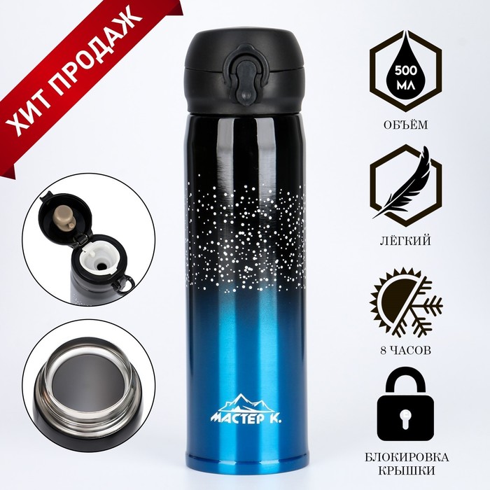 Термос "Мастер К" - это стильный аксессуар и отличный подарок на новый год, другу, подруге, брату, сестре, девушке, папе, маме, мужу, жене, бабушке и дедушке на день рождения, 23 февраля, 8 марта, 14 февраля.
