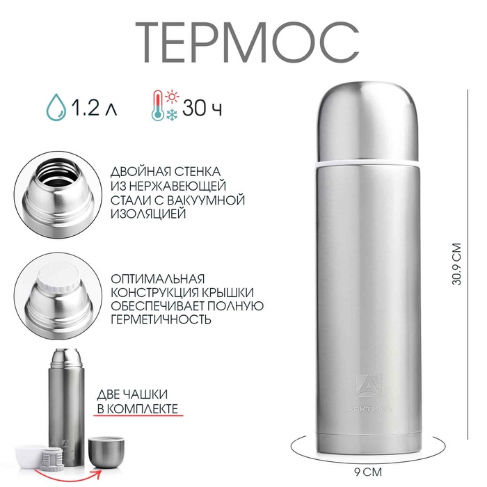 Вакуумный термос для чая "Арктика" с лаковым покрытием, в котором удобно заваривать чай, травяные сборы. Имеет 2 кружки