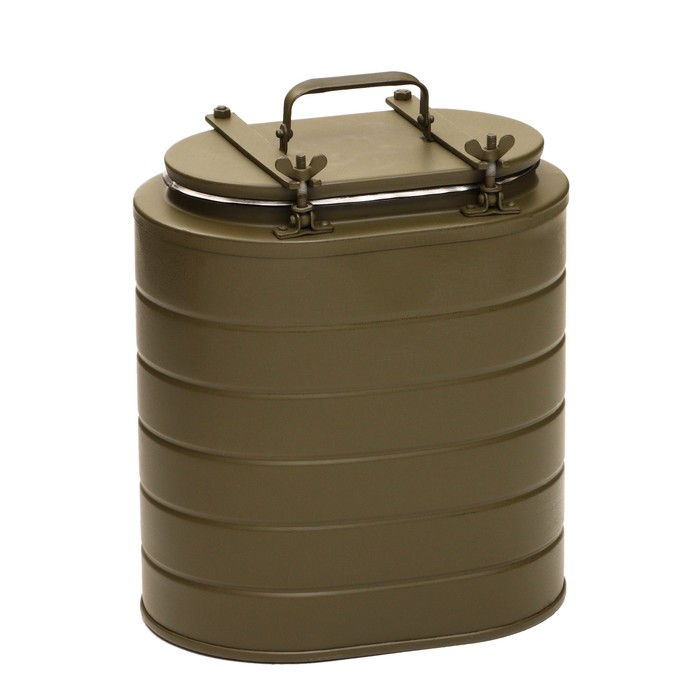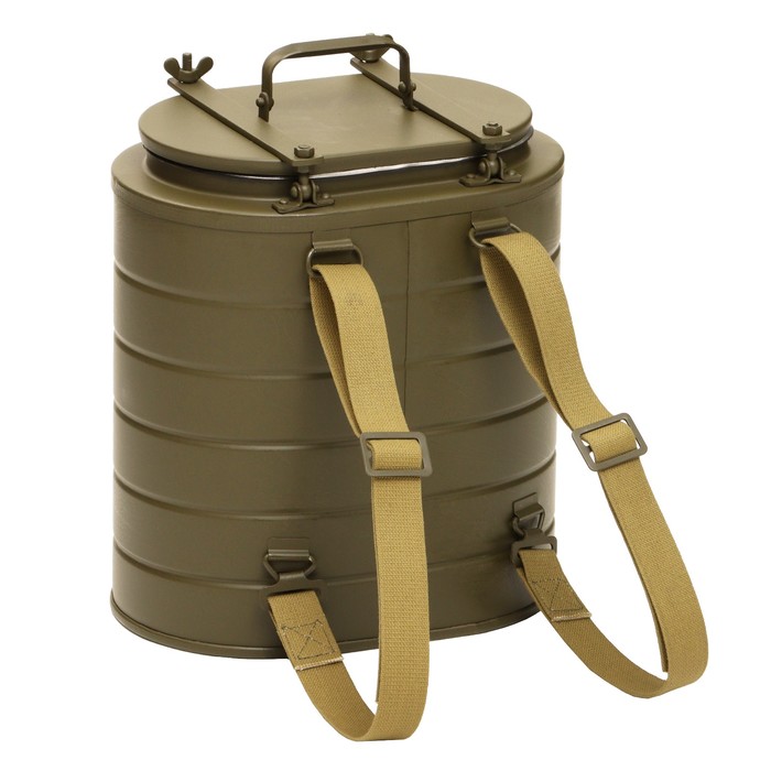 Армейский термос подходит для использования в полевых условиях. Изделие изготовлено из антикоррозийной стали, на поверхность корпуса нанесено атмосферостойкое лакокрасочное покрытие. В конструкции отсутствуют бьющиеся и хрупкие детали.