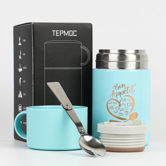 - Столовые приборы: термос комплектуется ложкой, что делает его идеальным для обедов на ходу.
