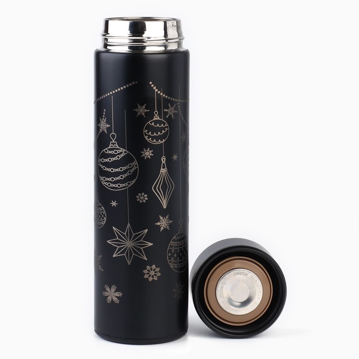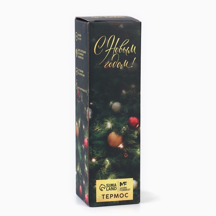 - Стильный дизайн: термос оформлен в современном стиле с новогодним настроением.
