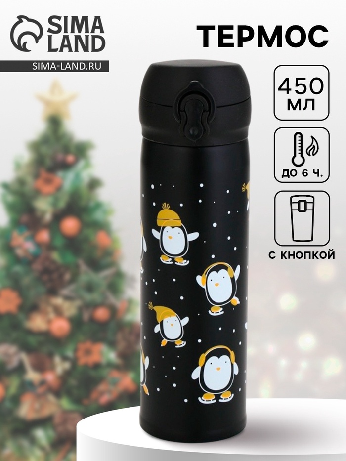 Термос «Пингвины» объёмом 450 мл — идеальный подарок для любителей зимних развлечений и активного отдыха.