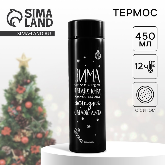 Термос «Зима в белых тонах» объёмом 450 мл — идеальный подарок для любителей зимних развлечений и активного отдыха.