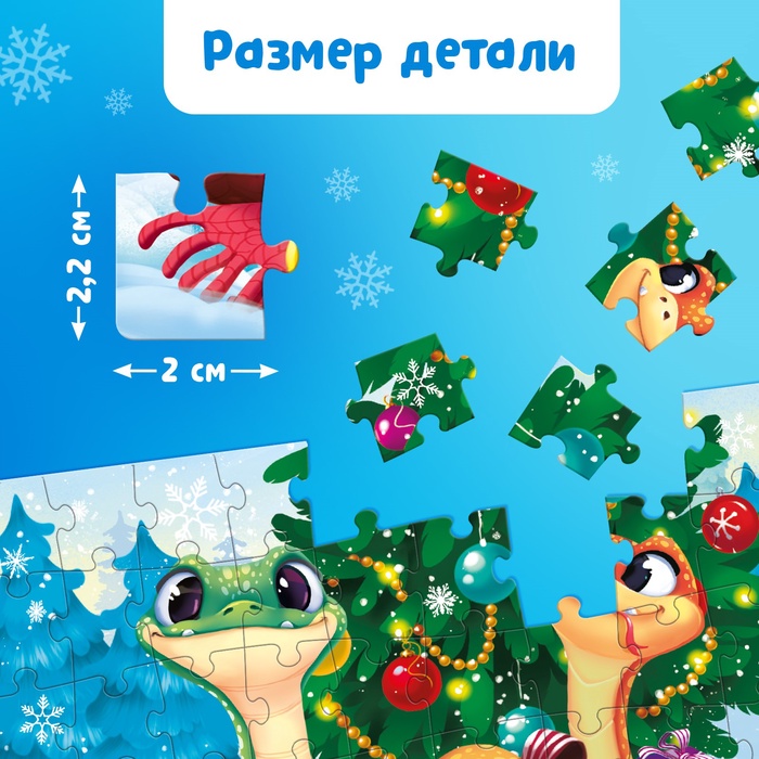 Ребёнок соберёт все 54 детали в одно целое, и получит красочную картинку размером 17,5 × 13 см.