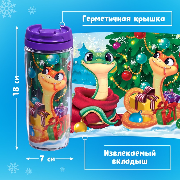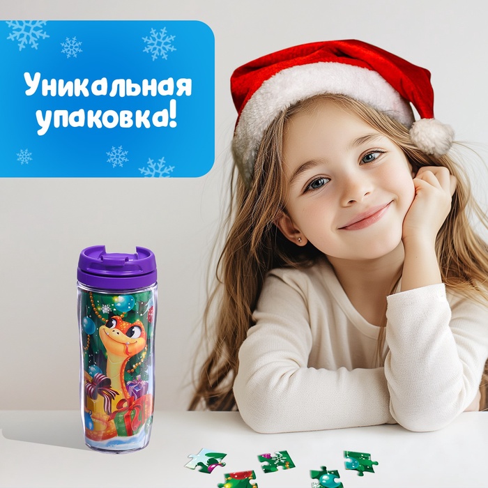 Пазл в ярком термостакане «Новогодний праздник змей» — это занимательная развивающая игра к Новому году, которая стимулирует познавательную активность и помогает упорядочить мысли. Благодаря практичному стаканчику ребёнок сможет наслаждаться любимым напитком на прогулке или по дороге в детский сад или школу.