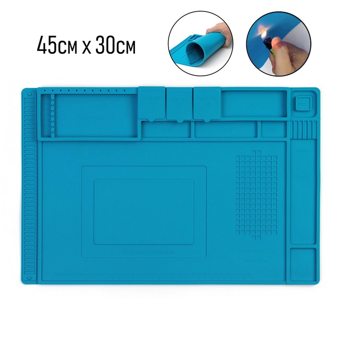 Термостойкий коврик позволяет организовать рабочее место и защищает элементы, находящиеся под ним, от температурного воздействия и статического заряда.