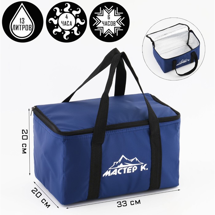 Термосумка для завтраков, обедов, объёмом 13 литров, отлично подойдет для школы, работы, пикников и путешествий. Изотермические свойства термосумки улучшаются с применением аккумуляторов холода. Снабжена откидной крышкой на молнии и ручкой для переноски. Она будет не менее эффективной, чем объемный ланч-бокс, и сохранит блюда свежими. Предназначена для хранения и транспортировки горячих и охлажденных продуктов.