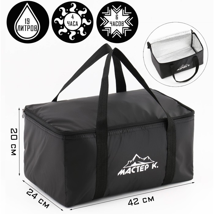 Термосумка для завтраков, обедов, объёмом 19 литров, отлично подойдет для школы, работы, пикников и путешествий. Изотермические свойства термосумки улучшаются с применением аккумуляторов холода. Снабжена откидной крышкой на молнии и ручкой для переноски. Она будет не менее эффективной, чем объемный ланч-бокс, и сохранит блюда свежими. Предназначена для хранения и транспортировки горячих и охлажденных продуктов.