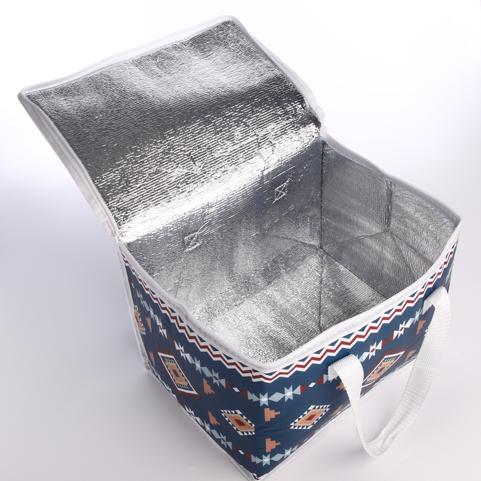 Термосумка "Сундучок", цвет глубокий синий. Идеальный компаньон для пикников, путешествий и ежедневного использования. Универсальный размер — 30x22x22 см, объемом 14 литров, застежка на молнии. Подходит для всех, кто ценит удобство, стиль и практичность. Изготовлена из качественных материалов: ПВХ и термофольги. Единое отделение обеспечивает удобное размещение содержимого.