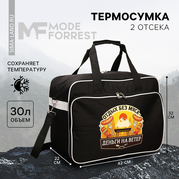 Термосумка объёмом 30 литров с двумя отсеками — идеальный аксессуар для хранения и переноски горячих или холодных продуктов.