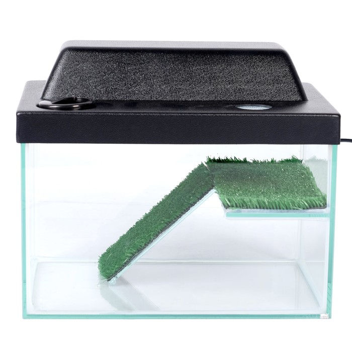 Комплект террариумов выполнен из высококачественного стекла, благодаря евро кромке имеет высокую защиту от трещин, сколов, что повышает степень безопасности при эксплуатации. Крышка надежно защищает от пыли, оснащена патроном под лампу Е14. Компактные размеры террариума позволяют разместить его в любом удобном месте, что делает его более доступным и удобным для использования и ухода. Благодаря удобной полке и лесенке любимец будет обеспечен кусочком суши и комфортными условиями для существования. Указан номинальный объём террариума.