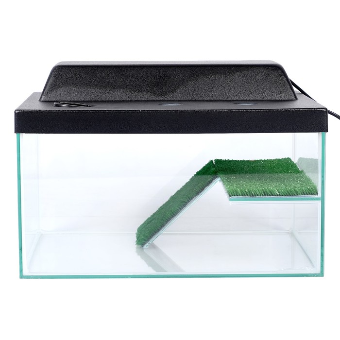 Комплект террариумов выполнен из высококачественного стекла, благодаря евро кромке имеет высокую защиту от трещин, сколов, что повышает степень безопасности при эксплуатации. Крышка надежно защищает от пыли, оснащена патроном под лампу Е14. Компактные размеры террариума позволяют разместить его в любом удобном месте, что делает его более доступным и удобным для использования и ухода. Благодаря удобной полке и лесенке любимец будет обеспечен кусочком суши и комфортными условиями для существования. Указан номинальный объём террариума.