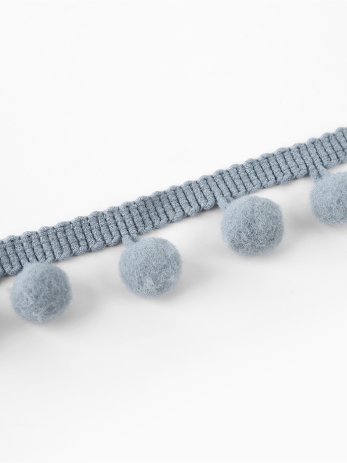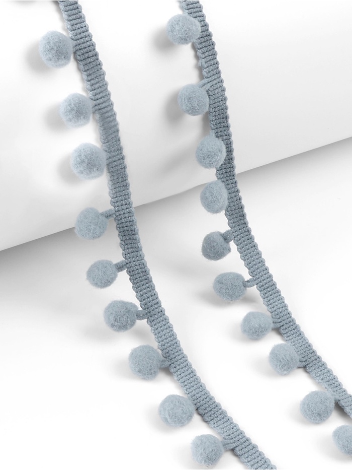 Декоративная тесьма с помпонами используется для украшения одежды, аксессуаров, предметов интерьера и других изделий. Она представляет собой узкую полоску ткани или шнура с пришитыми к ней на определённом расстоянии друг от друга небольшими мягкими шариками. Тесьма применяется для создания карнавальных костюмов, детской одежды, подушек и многого другого.