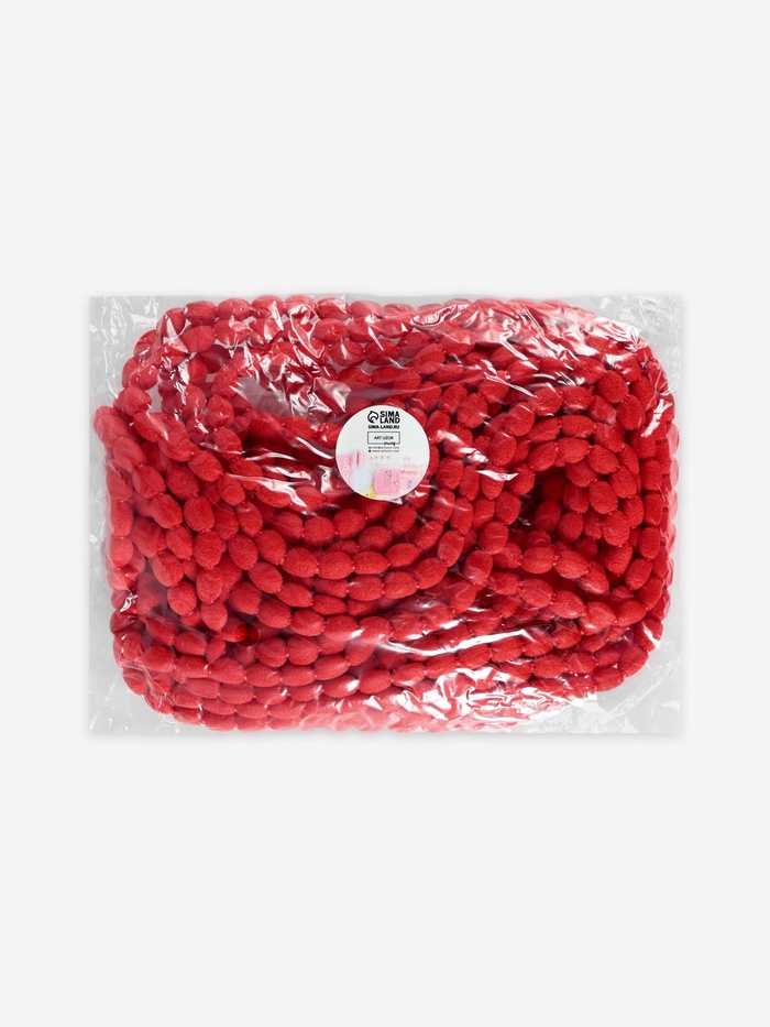 Яркий акцент для ваших творческих проектов — эта лента с пушистыми помпонами насыщенного красного цвета. Её жизнерадостный оттенок наполнит энергией любой творческий проект, будь то украшение интерьера или создание модных аксессуаров.